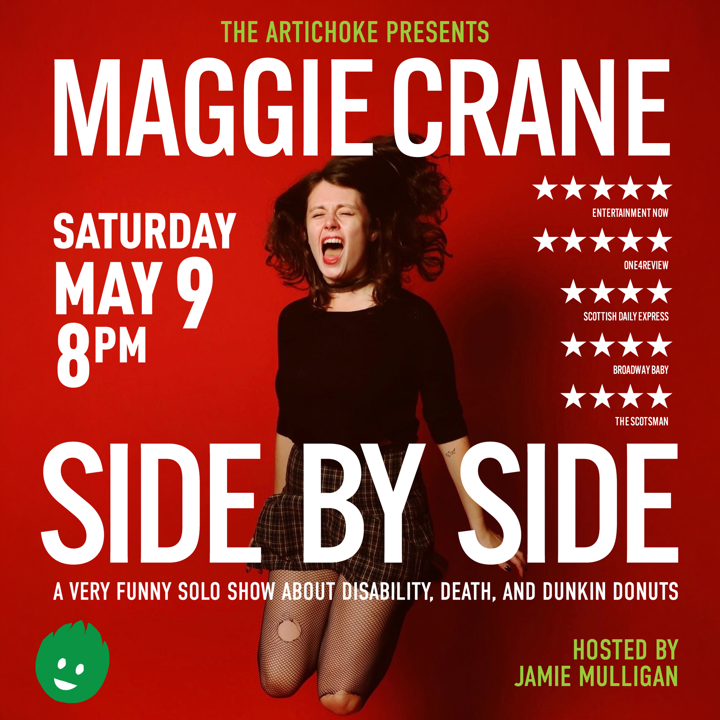 Side by Side is part solo show, part stand-up special about comedian Maggie's relationship with her older brother Aiden. Aiden was blind, in a wheelchair, and developmentally disabled, but this never stopped the wild jealousy, sibling rivalry, and unique bond between the two siblings.
